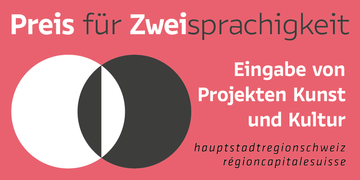 Der Verein Hauptstadtregion Schweiz lanciert den «Preis für Zweisprachigkeit». Ein Stipendium zur Unterstützung junger Talente und zur Förderung der Zweisprachigkeit. Die Kunst- und Kulturprojekte sollen die Zwei- und Mehrsprachigkeit thematisieren und den Austausch der Sprachkulturen sowie deren gegenseitiges Verständnis in den Vordergrund stellen. Der «Preis für Zweisprachigkeit», der mit einem Preisgeld von 15'000 CHF dotiert ist, wird für ein originelles und einzigartiges Projekt verliehen, das sich in der Erarbeitungsphase oder in einer entscheidenden Phase der Ausarbeitung befindet.