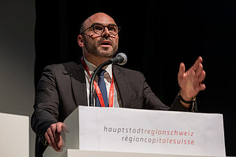 Co-Präsident und Neuenburger Regierungsrat Lauren Favre unterstreicht die Chancen für die Hauptstadtregion Schweiz: «Ich bin überzeugt, dass wir als Region im Herzen der Schweiz eine starke Position einnehmen können, wenn wir es schaffen, wie hier mit dem Projekt Ibex in Visp, neue Arbeits- und Lebenswelten mit Modellcharakter für die ganze Schweiz zu realisieren.»